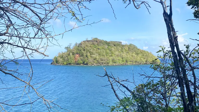 After about ten minutes, you will arrive at the beach of Anse Mathurin (2). Once you have passed the fishermen's huts, take the path that goes up on the left. There are several viewpoints on the Ramier islet (3). This islet was a strategic military point to defend the bay of Fort-de-France with the construction of a fort in the 18th century.