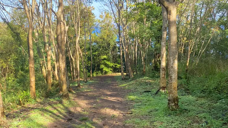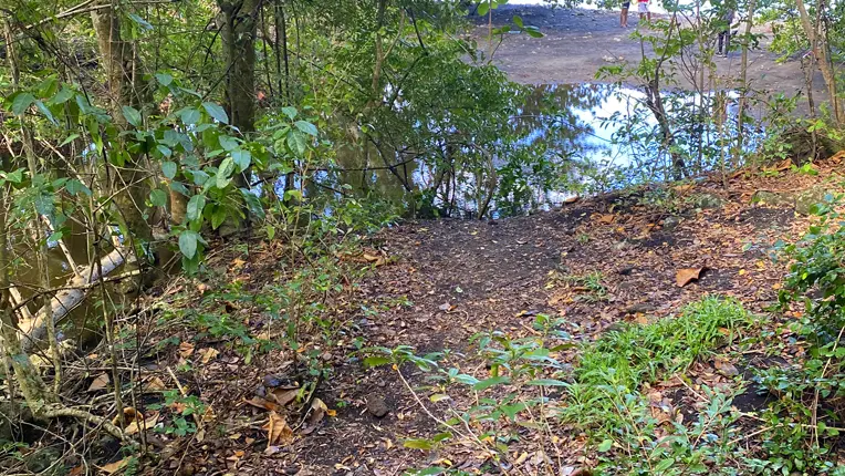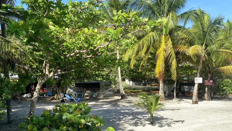 Park along the road, take the path (dead end sign), pass the gate (1). Walk down the shaded path to the coast where you can admire the blue and green shades of the Caribbean Sea and its coral beds.