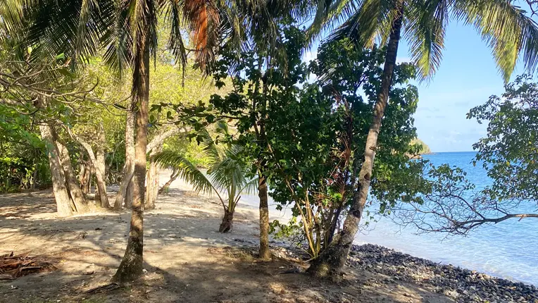 You then arrive at Anse Bellay (4), a place steeped in history, where archaeological excavations have uncovered pre-Columbian remains dating from the 10th century. But also a slave cemetery, a plaque has been placed there to pay homage to them, the area has been delimited by conches.