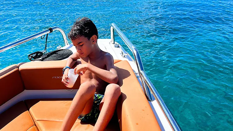 You’ll embark on an exceptional vessel, the Axopar 28 T-Top, elegant and comfortable, with a capacity of up to 10 passengers.