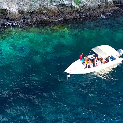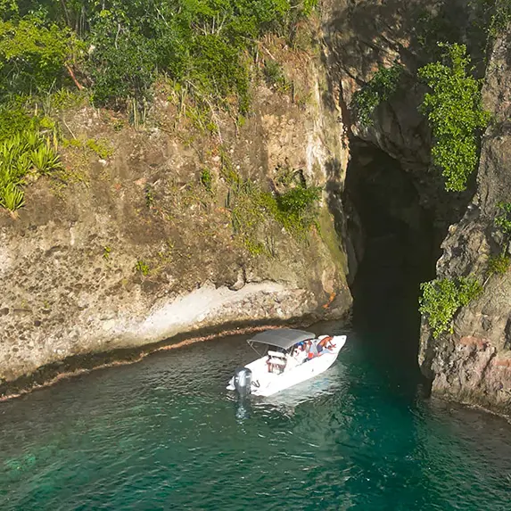 Setting off from the fishing port of La Taupinière, Ludovic, a passionate skipper, takes you on a journey to discover the most beautiful landscapes of the Caribbean coast. Here, the atmosphere remains intimate and cheerful. The boat, which is comfortable and safe, can accommodate up to 12 people.