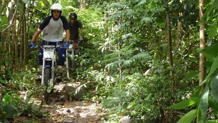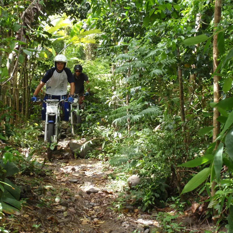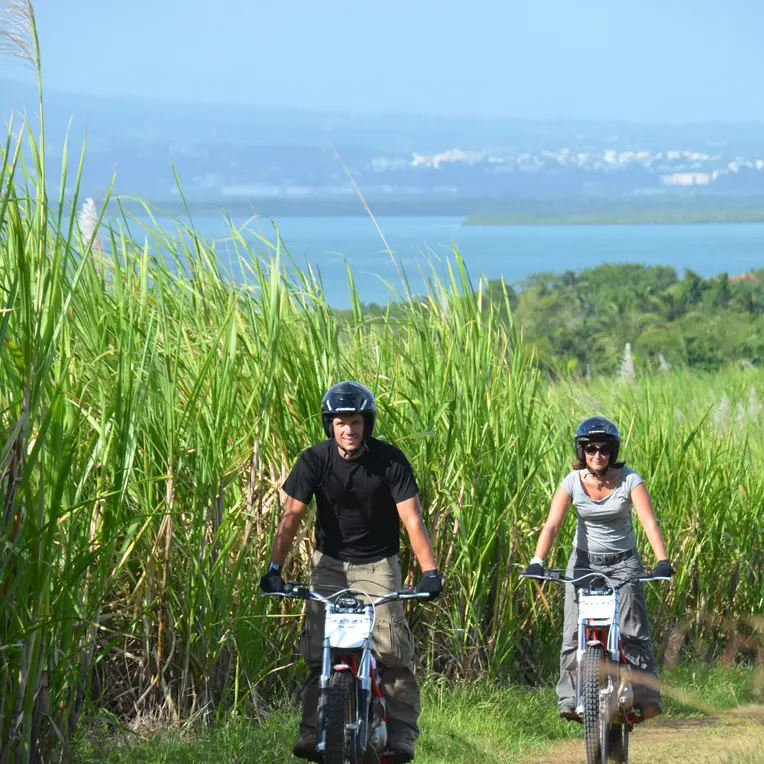 Trial motorcycling offers a different approach to Martinique: slower, more technical, more connected to the terrain. You overcome obstacles, balance, adjust. It's not just a ride, it's a riding experience in the heart of a vibrant tropical environment.