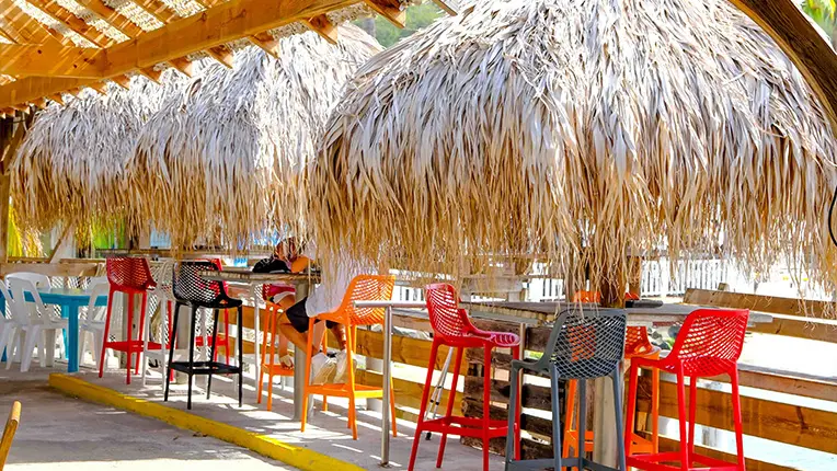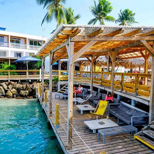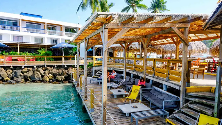 It's the perfect place to savour super planters, mojitos, piña coladas or a ti' punch, lounge on deckchairs facing the sea, take a dip in the crystal-clear waters or enjoy a Creole meal in the shade of the straw huts.