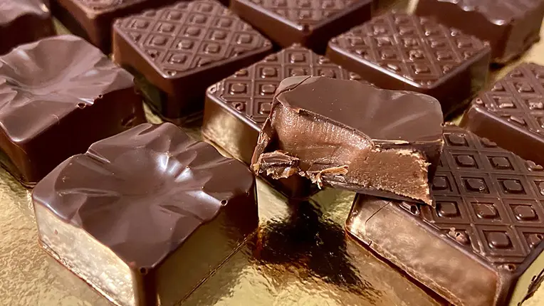- Bonbons de Chocolat’. Handmade from couverture chocolate, the flavours in this range are inspired by a wide variety of dried fruits, caramels and ganaches, with or without alcohol.
