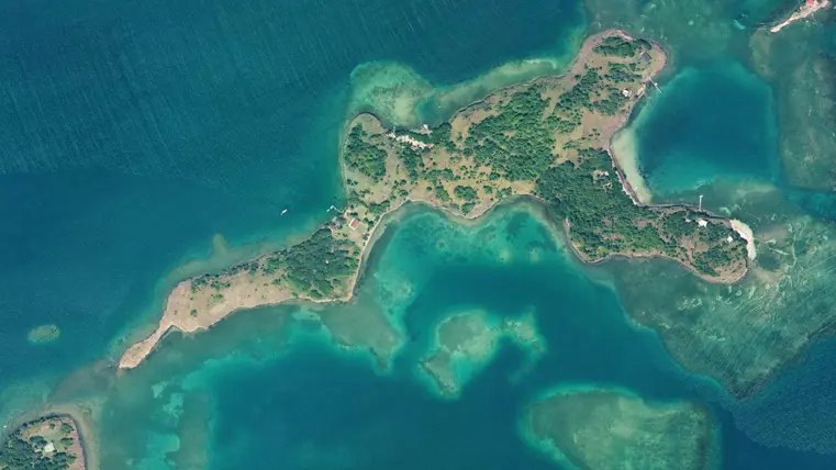 It is 5 km from the marina but 800m from the coast and reaches an altitude of 20 metres. It is equipped with a cove of fine sand. The islet is occupied by a relict mangrove. The vegetation cover is made up of grassy herbaceous plants. The animal fauna is abundant: sheep, anolis, small shrimps, crabs, zagayas, touloulous krab tè, crickets, woodlice, bedbugs are very frequent. The birdlife is abundant with the blackbird quisarle, the black-tailed dove and the savannah mockingbird, which is a rare species.