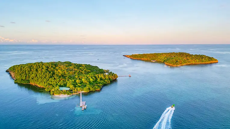 Oscar islet rises to 40m above sea level. It has sandy handles and a fine white sand.
