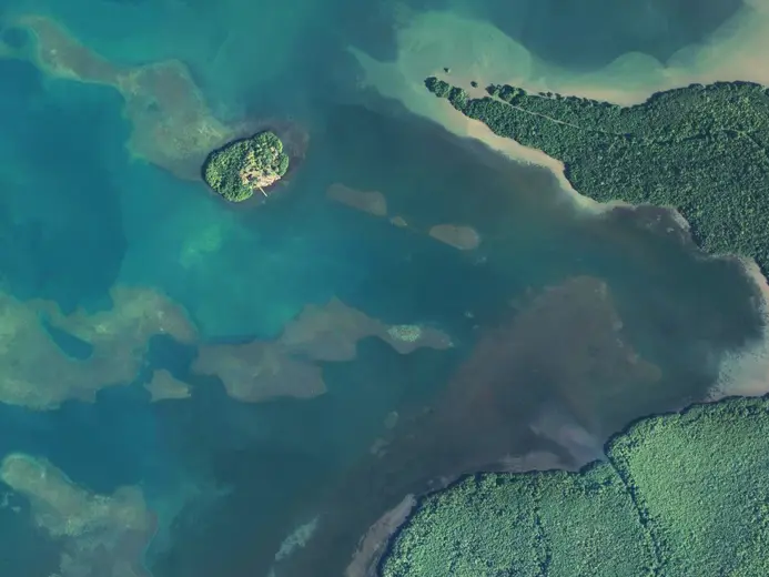 Petit Îlet is located in the Baie de Génipa, near the mouth of the Rivière Salée.