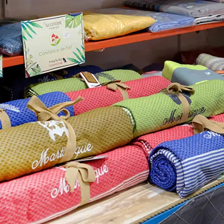 Unlike standardised shops, La Caverne selects original, handcrafted items produced in small batches by local and Caribbean designers: Uka, French Caribbean, Lm, Parfums Des Iles, François Moll, Arlette Pasero, Celine Chat, Soleil Bleu, Mar Illustration, Soleyka, Ipanema and many others.