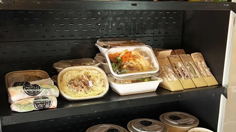 La gamme de snackings salés en libre-service permet un déjeuner à n’importe quel moment de la journée (sur place ou à emporter) rapide et équilibré : Des quiches, crudités, pâtes avec des sauces maison, des clubs-sandwichs, des wraps, des soupes… des plats cuisinés, vous sont proposés ... ainsi que les sushis de Sushi Wave, les bocaux repas de Boko Concept, les bo buns et les nems de Vel Viet.