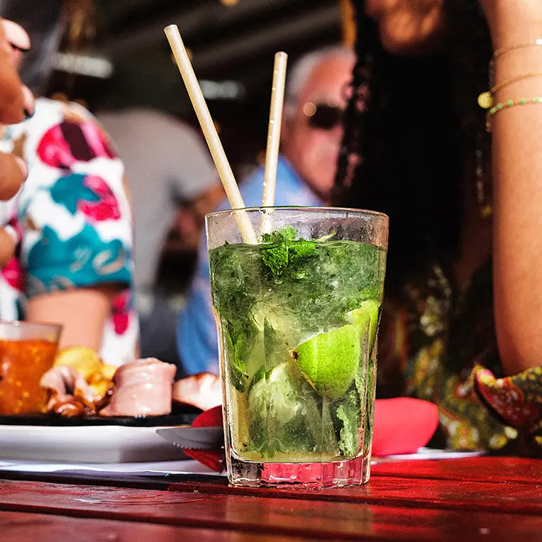 When you arrive at 6pm, it's time for Happy Hour, and you can drink their famous Mojito, the cocktail of the day, or their ice-cold BAM beer...