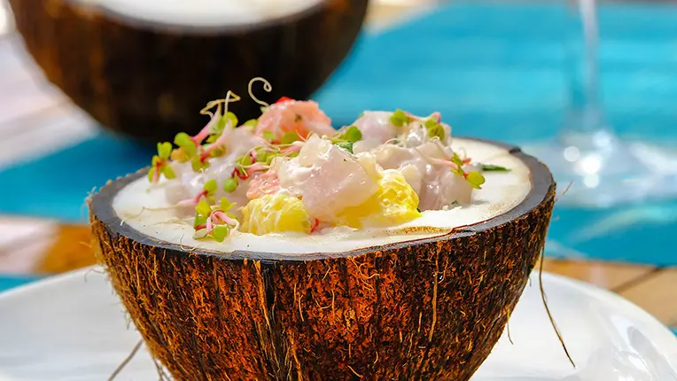 Nestling in the heart of the Caribbean splendour, beside the hotel swimming pool, the Flamant Rose restaurant, under the leadership of chef Henri Nunes, has been restored to its former glory. His modern cuisine showcases local produce with a touch of creativity. The beautifully decorated plates reflect the expertise and attention paid to every detail.