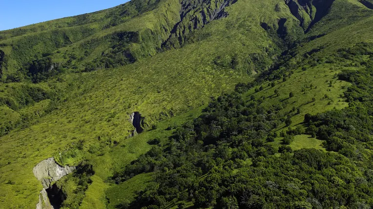 In the upper part of the volcano, temperatures can drop below 10°C, while rainfall can be around 10 meters of water per year. Because of the important differences in altitude, the peléenne vegetation, which takes root on a volcanic ground, is layered. On the seaside, the vegetation is relatively dry, sparse with meadows composed of tall grasses that climb up the gentle slopes on the Caribbean side. Banana fields and small isolated forests follow one another. On the other wilder slopes, there is a richer vegetation composed of large trees. Once past a certain altitude, these large trees give way to ferns and other high mountain plants, difficult routes for a unique point of view.