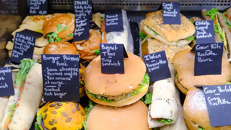 - Sandwiches, pain bagnat, bagel, mauricette, panini, cœur pavé, puff pastry, pretzel, tart, quiche, pizza, etc.