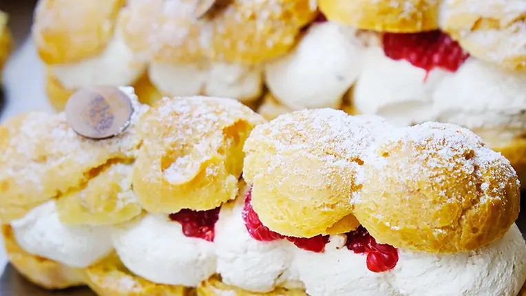 - French Viennese pastries and, at weekends, sugar tarts, large brioches and the famous kouglof.