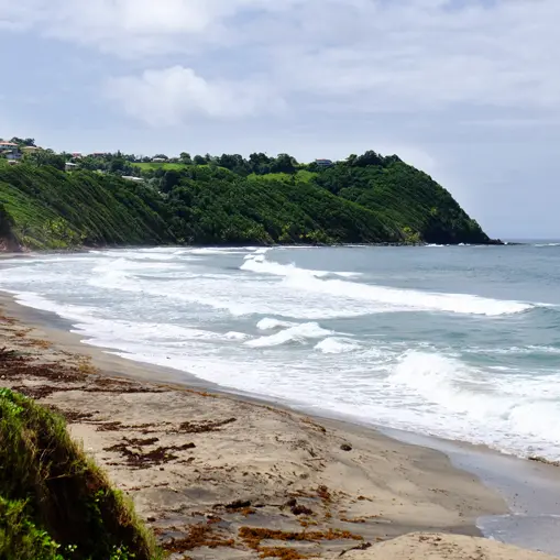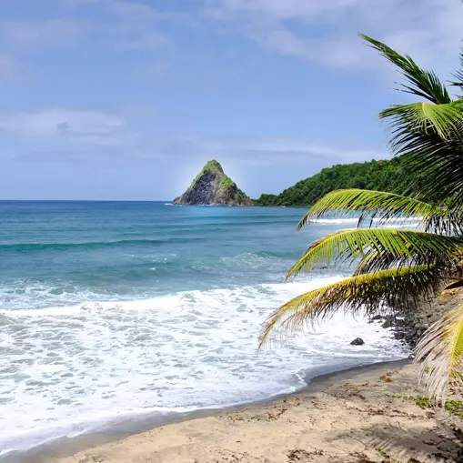 Anse Charpentier beach, located between Sainte-Marie and Marigot in Martinique, is a natural wonder on the Atlantic coast and one of the most beautiful beaches on the island. The beach stretches for almost 800 metres, revealing fine sand ranging from blond to grey, framed by the mouth of the Charpentier river and the volcanic peak known as "Pain de Sucre".