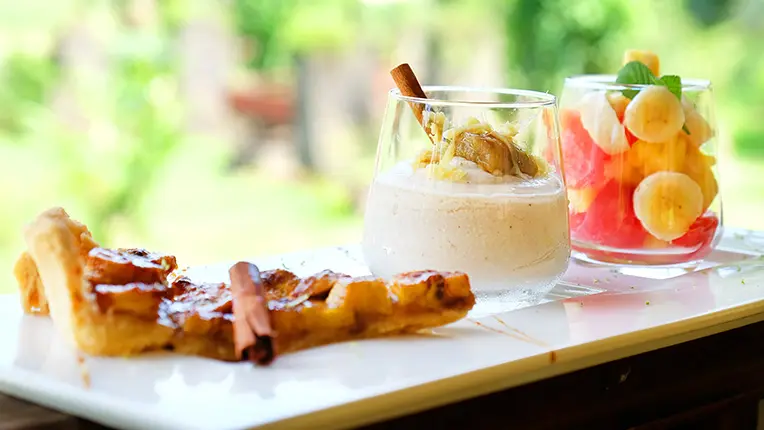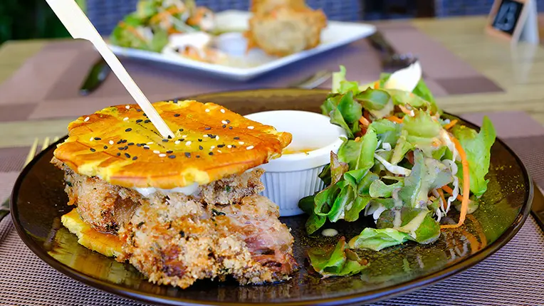 The chef has created a menu based on fresh, local produce, which changes according to the market. Dishes rich in flavours where the banana is present in all its forms: fried, in gratin, in mousseline, in velouté, in skewer, in purée, in dessert...and of course in the cocktails!