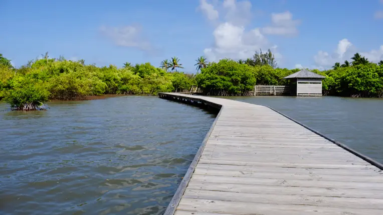 Located in the south of Martinique, on the banks of the Saint-Lucia channel, the Etang des Salines occupies an area of 207 hectares. By entering this lagoon, the waters of the Atlantic Ocean and Caribbean Sea produce specific ecological conditions that favour the development of a rich and diverse aquatic population.