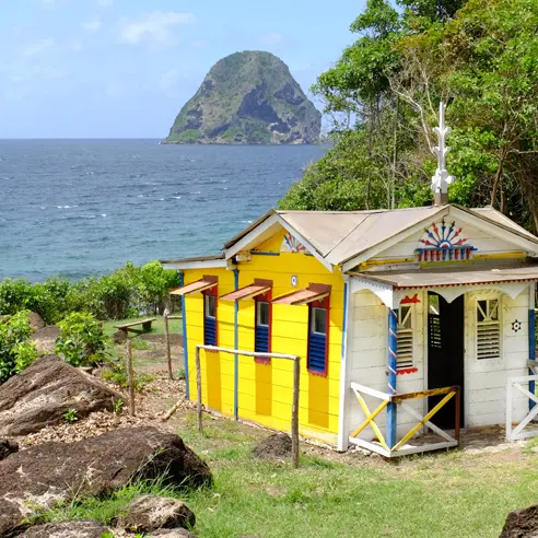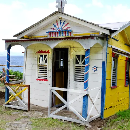 Former convict, sentenced to life imprisonment in 1925 and freed at the closure of the Cayenne prison in 1945, he built in the 1960s his small wooden house decorated with vivid paintings, enjoying a magnificent view over the Diamond Rock and the channel of Saint Lucia at the foot of Morne Lacher.
