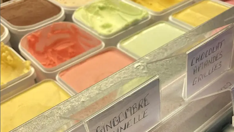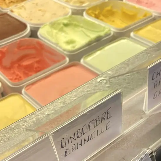 In his small shop located a stone's throw from the church, Claude makes 100% natural ice creams and sorbets in his laboratory, using seasonal fruits, plants, and herbs.