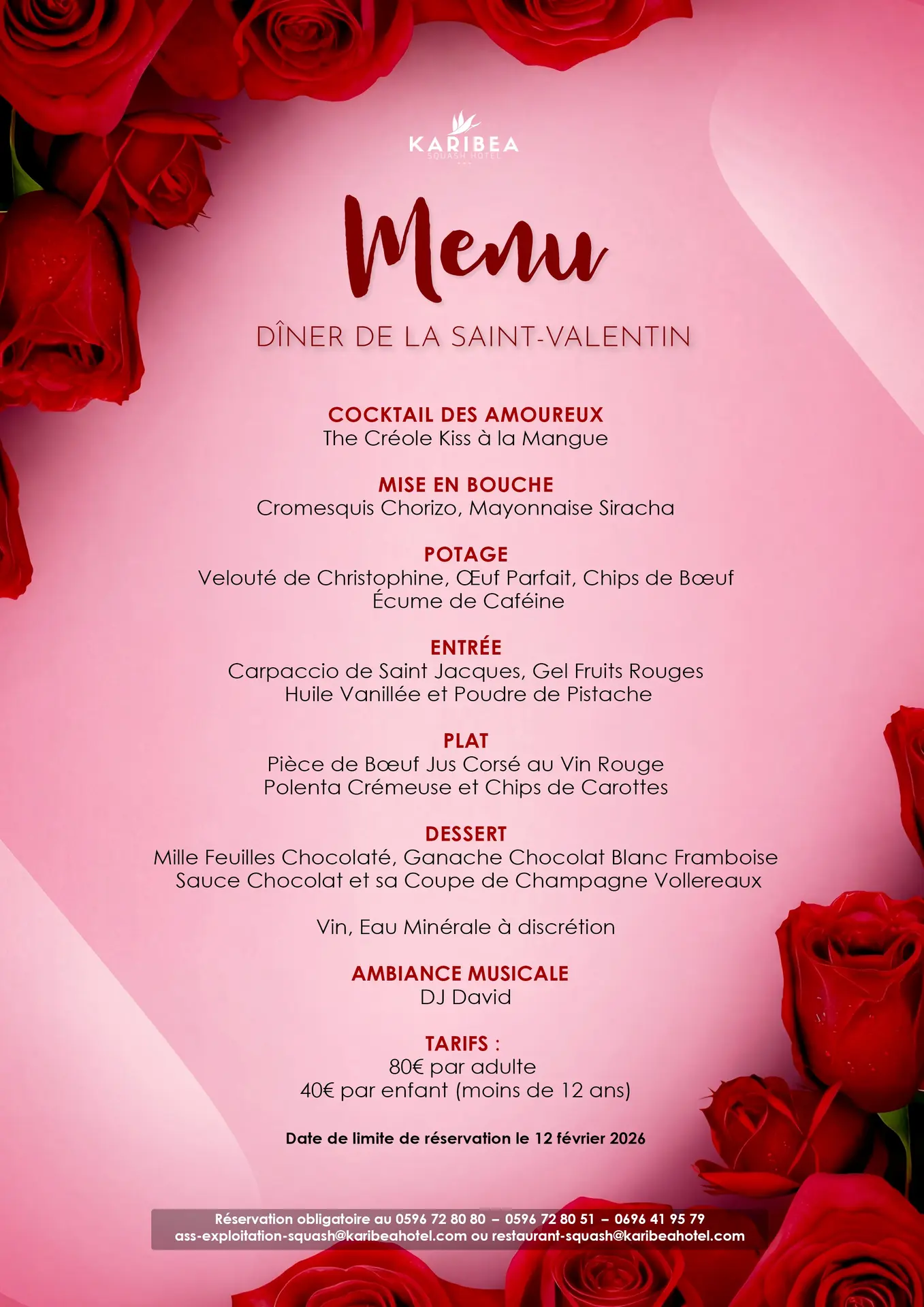 Menu de la Saint-Valentin (Le Jardin des Alizés - Karibéa Squash Hôtel ***)